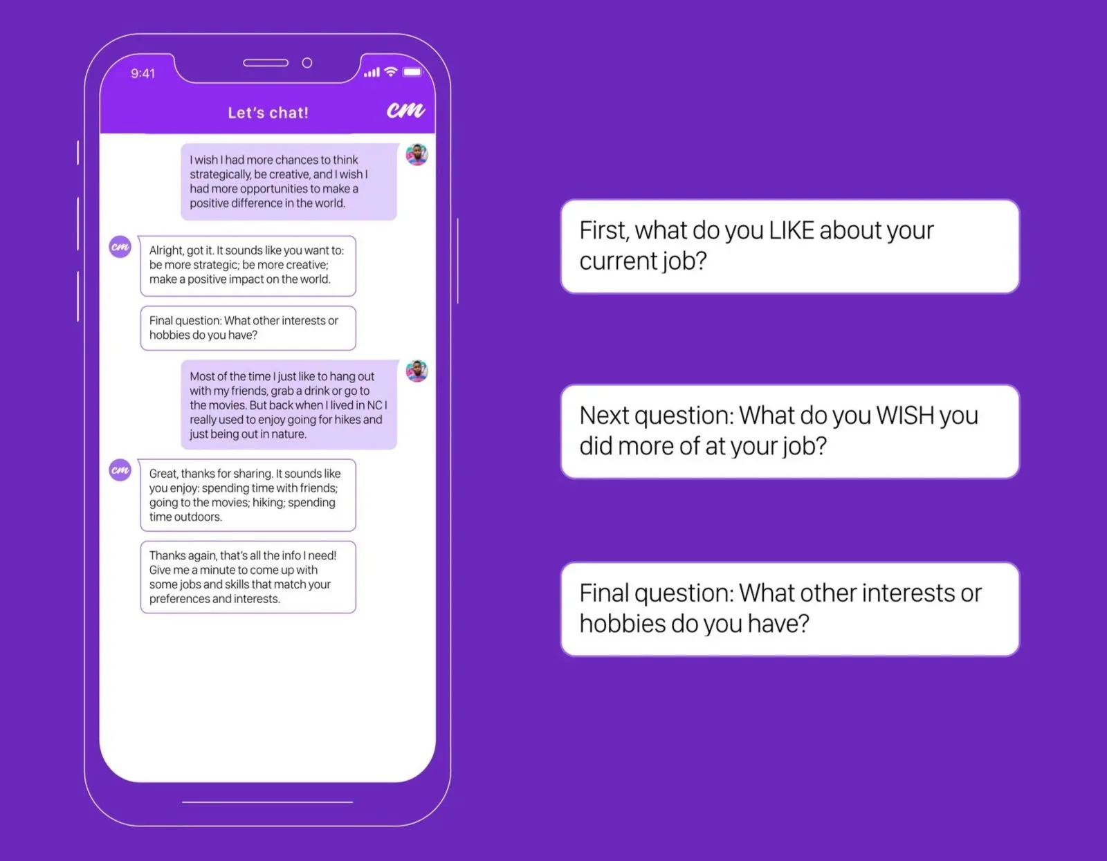 Classmates is an app that uses a chatbot interface to help career-changers find a new role that fits their preferences and personality. The app then connects users to learning resources to get them there, and corrals them into a virtual “classroom” with peers so they can collaborate on classwork — and start building their professional network right away.